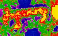 Certaines technologiques d'acquisition de données au moyen de satellites profitent désormais à l'archéologie ayant donné naissance à l'archéologie spatiale. Bénéficiant du traitement informatique, les images satellitaires obtenues apportent une moisson d'informations utiles aux chercheurs. Parmi les dispositifs et techniques utilisés, le radar à synthèse d'ouverture, l'imagerie thermique ou thermographie, ou imagerie infrarouge, et l'imagerie ultraviolet font partie de cette discipline qui part du constat que les structures archéologiques enfouies, qu'il s'agisse de terrassements ou de bâtiments, laissent souvent des traces à la surface en modifiant les propriétés des matériaux qui les recouvrent tels que le sol et la végétation et que ces traces peuvent être plus facilement visibles d'un point de vue éloigné qu'en prospectant en surface[11]. Avec le radar à synthèse d'ouverture interférométrique (en), l'intensité, la cohérence et l'interférométrie de rétrodiffusion des ondes radar peuvent être utilisées pour identifier des structures archéologiques comme ce fut fait dans un certain nombre de zones dans les environs de Rome, en Italie[11].