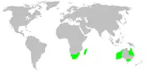 Les espèces de cette famille se rencontrent en Afrique du Sud, à Madagascar et en Australie. Des fossiles sont connus d'Eurasie[1].