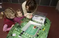 - - des ateliers ludiques : plaques en relief (empreintes animaux, feuilles arbres), bornes informatiques (sons, contes, vidéos), affût (film animalier), meubles mystères (toucher, reconnaissance d'essences, sol forestier, papillons)...
