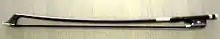Le plus souvent en bois de pernambouc — qui a la particularité de ne pas faire de nœuds qui sont source de cassure — mais encore en amourette ou en bois de fer. Elle doit être souple et nerveuse. L'archetier utilise une baguette droite qu'il courbe lentement pendant une demi-heure sur un coin de table, au-dessus d'une source de chaleur. La baguette adopte alors une forme légèrement courbe vers l'intérieur, forme inventée par Tourte, à l'inverse de son ancienne forme, extrêmement courbée vers l'extérieur. La qualité de la baguette peut être grossièrement jugée grâce à un critère : le talon, le milieu et la pointe sont-ils toujours alignés dans la forme définitive de la baguette ? Si ce n'est pas le cas, l'archet a de fortes chances d'être difficile à manipuler.