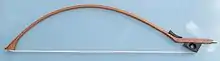 Différents archets : alto, contrebasse (modèle allemand), gadoulka, kamânche ; ils retracent grossièrement l'évolution de l'archet.