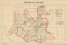 C'est en 1659 que l'évangélisation de la province du Yunnan est confiée au vicariat apostolique du Tonkin dirigé par Mgr Pallu, puis à Mgr Lopez, vicaire apostolique de Nankin.