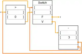 Voici deux exemples de ces instructions, dans un test conditionnel et dans une boucle. Notez l'initialisation à Faux sur le nœud merge pour correctement sélectionner la valeur de x.