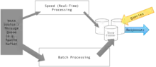 L'architecture Lambda est un système composé de trois couches: le traitement par lots, le traitement rapide (ou en temps réel) et une couche serveur pour répondre aux requêtes[3]. Les couches de traitement acquièrent à partir d'une copie maîtresse immuable l'intégralité du jeu de données.