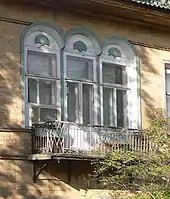 | Niches, rosettes sur trois fenêtres en forme d'éventail. Oulitsa Gogol, 96 | Mezzanine dans le "style art nouveau". Rue Tchernychevski, 15 | Porte d'entrée et porche dans le "style modern". Maison Boutyrine (Blagovechenskaïa oulitsa, 22) |