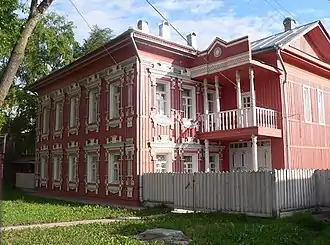 À partir du milieu du XIXe siècle, s'est formée une architecture en bois "type" pour les maisons de Vologda. Il s'agit d'une maison de maître à un étage, de forme proche d'un cube allongé, avec une cour. Deux éléments sont essentiels : le balcon et la loggia, sous lesquels se trouve le perron et l'escalier avec des entrées séparées pour les appartements de l'étage. L'accès à la maison se fait à partir de la rue, à la différence de ce qui se faisait précédemment. En fonction des possibilités et de la taille de la maison, à chaque niveau, on trouve un ou plusieurs appartements. La décoration des corniches, des perrons, des balcons, des chambranles est souvent réalisée en panneaux de bois sculptés.