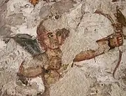 En 2010, il a été révélé qu'un biclinium, désormais connu sous le nom familier de « Maison peinte », à Siq al-Barid (surnommée la « Petite Pétra »), en Jordanie, possédait d'importantes fresques au plafond, longtemps dissimulées sous la suie des feux de camp bédouins, ainsi que d'autres inscriptions au cours des siècles suivants. Un projet de restauration de trois ans a permis de les rendre à nouveau visibles. Elles représentent, avec force détails et par le biais de divers supports, notamment des glaçures et des feuilles d'or, des images telles que des vignes et des putti associés au dieu grec Dionysos, ce qui suggère que l'espace a pu être utilisé pour la consommation de vin, peut-être avec des marchands de passage. Outre le fait qu'elles constituent le seul exemple connu de peinture figurative intérieure nabatéenne in situ, elles sont l'un des très rares exemples de peinture hellénistique encore existants, et ont été considérées comme supérieures aux imitations romaines ultérieures du style à Herculanum[35]. Les peintures murales du Biclinium peint peuvent être regroupées en deux grandes scènes. La plus grande chambre a son mur sud décoré de stucs, créant des éléments architecturaux factices qui rappellent certaines peintures murales pompéiennes.