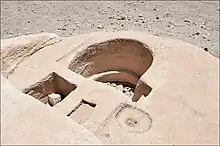 Les bâtiments résidentiels comprennent des palais, de grandes maisons urbaines, des maisons rurales et de simples petites maisons généralement fabriquées à partir des matériaux locaux trouvés dans la région[19],[20]. Relativement peu de recherches archéologiques ont été effectuées dans les zones résidentielles de Pétra. Les travaux effectués dans la zone az-Zantur de Pétra ont indiqué qu'il y a eu une évolution de l'habitat non permanent (tentes) vers des structures construites, la sédentarisation ne s'étant produite que progressivement et les tentes coexistant avec des demeures seigneuriales même dans les phases ultérieures de l'évolution. Même la demeure nabatéenne az-Zantur, bien étudiée, construite en pierre et richement décorée, se composait d'une somptueuse aile de représentation, avec des stucs occidentaux et des fresques, et d'une simple aile résidentielle. Il y avait également des grottes utilisées à des fins résidentielles. La zone résidentielle de Hegra est située au milieu de la plaine, loin des affleurements[21]. Le principal matériau de construction des maisons et du mur d'enceinte était la brique crue séchée au soleil[21]. Il reste peu de vestiges de la zone résidentielle.