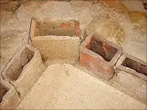 - (en) Jean-Pierre Adam, « Heating and baths a Techniques of heating », dans Roman building Materials and Techniques, Routledge, (ISBN 9780415208666), p. 558.