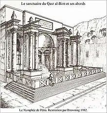 L'architecture religieuse était surtout représentée par les temples nabatéens, représentés par plusieurs modèles architecturaux construits en fonction des rituels de culte nabatéens, notamment le Grand Temple et le Temple des Lions ailés[7],[8].
