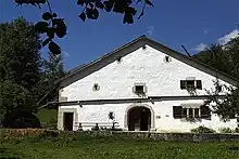 Au nord-ouest de la Suisse et sur le Plateau romand, les fermes à usages multiples (Dreisässenhäuser) sont construites en pierre[10],[ms 8].