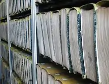 En droit français, les archives privées sont toutes les archives qui ne revêtent pas le caractère légal d'archives publiques ; on peut y rattacher ainsi les papiers de famille et les documents personnels, les archives d'entreprise, associatives, politiques, les archives d'avocat[6] ou encore les archives religieuses. Elles peuvent être données, léguées ou confiées en dépôt à des services d'archives publics ou privés et leur communication peut obéir alors à des règles particulières fixées par leur propriétaire. La conséquence naturelle de ce principe est que les archives privées ne sont pas imprescriptibles, qu'elles peuvent faire l'objet d'une transaction. En France, certaines archives privées peuvent faire l'objet d'une mesure de classement comme « archives historiques ». Elles restent propriétés de leur détenteurs originels, mais l'administration publique des archives doit être avisée de tout ce qui pourrait affecter leur intégrité (aliénation, restauration, etc.).