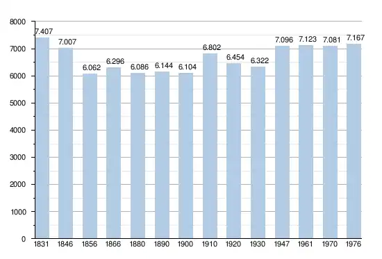 - Source : DGS - Remarque: 1831 jusqu'à 1981=recensement; depuis 1990=nombre d'habitants chaque 1er janvier[8]