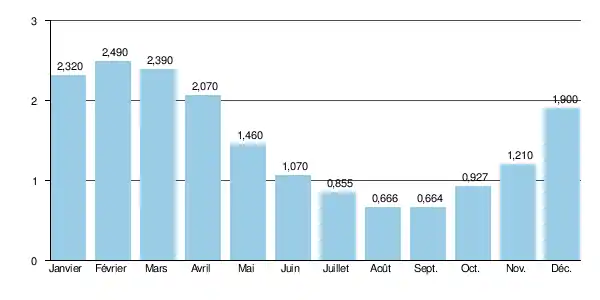 - précédent record du débit instantané maximal de 28,6 m3/s le 26 mars 1988