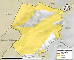 Le retrait-gonflement des sols argileux est susceptible d'engendrer des dommages importants aux bâtiments en cas d’alternance de périodes de sécheresse et de pluie. 75,8 % de la superficie communale est en aléa moyen ou fort (44,5 % au niveau départemental et 48,5 % au niveau national). Sur les 70 bâtiments dénombrés sur la commune en 2019, 49 sont en aléa moyen ou fort, soit 70 %, à comparer aux 75 % au niveau départemental et 54 % au niveau national. Une cartographie de l'exposition du territoire national au retrait gonflement des sols argileux est disponible sur le site du BRGM[23],[Carte 3].