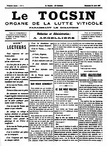 - Révoltes vigneronnes 1907, Languedoc, 1911, Champagne