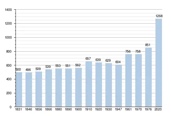 - Sources : INS, Rem. : 1831 jusqu'en 1970 = recensements, 1976 = nombre d'habitants au 31 décembre.