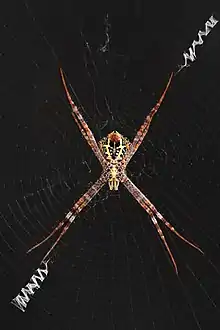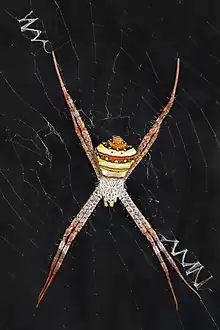 Argiope versicolor construit une toile avec un stabilimentum[4].