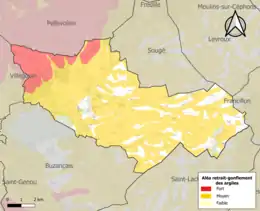 Le retrait-gonflement des sols argileux est susceptible d'engendrer des dommages importants aux bâtiments en cas d’alternance de périodes de sécheresse et de pluie. 82,6 % de la superficie communale est en aléa moyen ou fort (84,7 % au niveau départemental et 48,5 % au niveau national). Sur les 380 bâtiments dénombrés sur la commune en 2019, 192 sont en aléa moyen ou fort, soit 51 %, à comparer aux 86 % au niveau départemental et 54 % au niveau national. Une cartographie de l'exposition du territoire national au retrait gonflement des sols argileux est disponible sur le site du BRGM[22],[23].