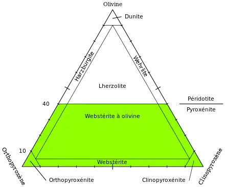 Cette roche varie dans sa composition (pyroxènes, spinelle, pyrope, hornblende, amphibole...) et peut comprendre en proportion variable du grenat. En minéralogie, les ariégites constituent un des quatre groupes des pyroxénites.