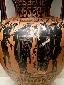 Initialement, Ariane était l'épouse de Dionysos, son « double féminin »[10]. Hésiode dans la Théogonie la présente comme telle[11]. Il affirme qu'Ariane fut transportée au ciel, Zeus l'ayant rendue immortelle afin de complaire à Dionysos, qu'elle avait épousé : « Dionysos aux cheveux d'or pour florissante épouse prit la blonde Ariane, la fille de Minos, que le fils de Cronos a soustraite à jamais à la mort et à la vieillesse ».