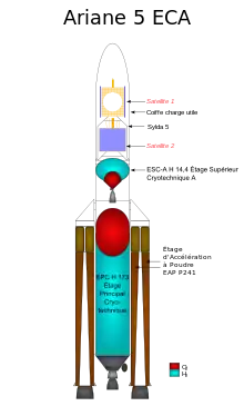 - Ariane 5 ECA : Peut placer 10,5 tonnes en orbite de transfert géostationnaire. Elle est équipée avec le moteur Vulcain 2 et un nouvel « étage supérieur cryotechnique A » ;