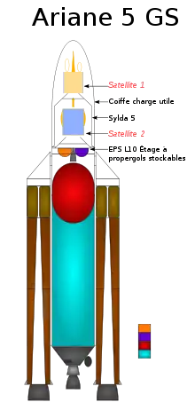 | 2e étage | ESC : 1 moteur HM-7B, 14,4 tonnes d'ergols cryogéniques LOX/LH2 (Ariane 5 ECA) EPS : 1 moteur Aestus, 9,7 tonnes d'ergols liquides N2O4/UDMH (Ariane 5G et ES) |
