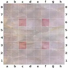 Le plateau présenté ci-contre est conçu spécifiquement pour Arimaa, avec les cases-pièges démarquées par une couleur différente.