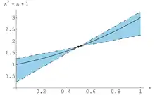 Par exemple, on considère la fonction f définie par f(x) = x2 + x. Les valeurs de cette fonction sur l'intervalle [–1, 1] sont [–14, 2]. Avec les règles de calcul sur les intervalles, on aurait en revanche obtenu [–1, 2], qui est plus large.