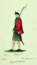 Mercenaires allemands dans la guerre d'Amérique, dessin de Richard Knötel (1857-1914).