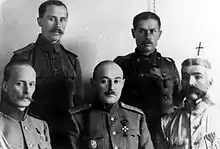 De gauche à droite : lieutenant-général Keltchevski, colonel Ilitch, lieutenant-général Sidorine, colonel Dobrynine, lieutenant-général Mamontov.