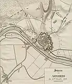 Bülow envoie en avant le détachement d'Oppen qui entre à Doesburg le 23 novembre ; le corps principal de Bülow prend Arnhem le 29 novembre et entre le 2 décembre à Utrecht. Le 3 décembre, la cavalerie prussienne entre à Rotterdam. Les Français se replient vers le Brabant du Nord, au sud du Waal, et ne gardent plus que quelques forteresses au nord du fleuve[38]. Le 9 décembre, les cosaques de Benckendorff entrent à Breda, abandonnée par ses défenseurs, et le 10, à Geertruidenberg ; le même jour, les Britanniques du général Graham débarquent à Willemstad. Le 16, le corps de Bülow entreprend l'encerclement de Gorinchem (Gorkum). Les divisions Zielinski et Thümen franchissent le Waal et obligent le petit contingent français de Molitor, à se replier pour rejoindre le corps du maréchal Macdonald à Nimègue. Napoléon ordonne une contre-offensive vers Breda qui est un échec ; les Britanniques font leur jonction avec les Prussiens le 20 décembre en apportant de l'artillerie et des munitions. Les Britanniques entreprennent l'encerclement de Berg-op-Zoom, Delfzijl, Nimègue, Bois-le-Duc, Flessingue, Terwere, Walcheren, Naarden et Texel. Les Hollandais partisans de Guillaume d'Orange commencent à former des troupes aux côtés des coalisés[41]. Au début de janvier 1814, Bülow rassemble ses forces pour entrer en Belgique annexée par la France et prend l'offensive vers Anvers, défendue par le corps français du général Nicolas-Joseph Maison. Le 13 janvier, Bülow tente une première attaque dans la banlieue d'Anvers, sans succès[42]. Le 26 janvier, les Prussiens prennent d'assaut Bois-le-Duc, aidés par la révolte des habitants ; la garnison française de la citadelle se rend le lendemain[43].