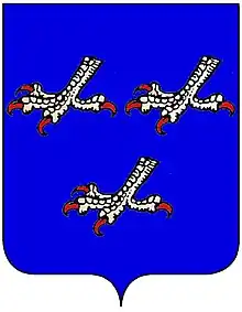 Les Landevoisin portent : D'azur à 3 griffes d'argent armées de gueules 2 et 1[4] ; supports deux sauvages debout avec massues.