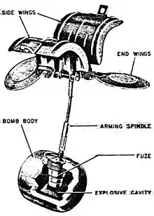 Sprengbombe Dickwandig 2 kg ou SD2, plus communément appelé bombe Butterfly; bombe antipersonnel allemande de la seconde guerre mondiale.