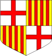 Il est ainsi normal de blasonner, sur ce modèle, « écartelé, au premier et quatrième d’argent à la croix de gueules (croix de saint Georges), au second et troisième d’or à quatre pals de gueules (Aragon), qui est de Barcelone ».