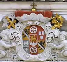 Par exemple, pour l'illustration ouvrant le présent article (armes de Lothaire-François de Schönborn) on blasonnera ainsi :