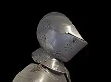 Il disparaît vers 1650 avec l'abandon progressif des casques et cuirasses sur le champ de bataille, face au progrès constant des armes à feu.