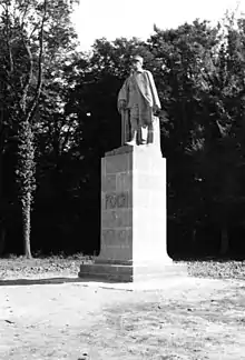 La statue du maréchal Foch dans la clairière de Rethondes, cliché de 1940.