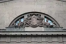 Symboles de l'État lituanien - Les colonnes de Gediminas (Gediminaičių stulpai) et Vytis sur le fronton de la Banque de Lituanie, Kaunas, 1927