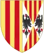 Constance de Hohenstaufen (1248 † 1302), consort de Pierre III, roi d'Aragon. Parti en 1 d'argent à l'aigle de sable et 2 mi-parti d'or à quatre pals de gueules[3] |