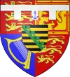 Écartelé : I et IV de gueules à trois léopards d'or armés et lampassés d'azur (d'Angleterre) ; II d'or, au lion de gueules, au double trescheur fleuronné et contre-fleuronné du même (d'Écosse) ; III d'azur, à la harpe d'or, cordée d'argent (d'Irlande) ; au lambel à trois pendants d'argent brochant, celui en cœur chargé d'une rose de gueules (dite de Saint Georges), les deux autres chargés d'un canton de gueules ; sur-le-tout burelé de dix pièces de sable et d'or au crancelin de sinople, brochant en bande sur le tout (de Saxe)[13]. |