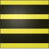 D'argent, à une hie de sable posée en bande accompagnée de six roses de gueules ordonnées en orle |