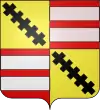 Écartelé, aux 1 et 4 d'or, une croix ancrée de gueules ; aux 2 et 3 d'argent, une hie de sable posée en bande accompagnée de six roses de gueules ordonnées en orle |