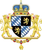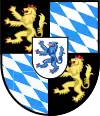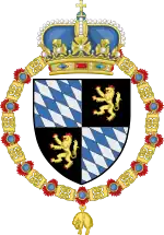 fuselé en bande d'azur et d'argent (Wittelsbach), sur-le-tout au lion d'or, armé, lampassé et couronné de gueules.