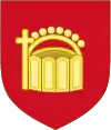 écartelé en 1 et 4 de sable, au lion d'or, armé, lampassé et couronné de gueules et en 2 et 3 fuselé en bande d'azur et d'argent, sur le tout de gueules à la couronne de Charlemagne d'or