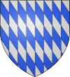 fuselé en pal d'azur et d'argent[1]. Différences entre dessin et blasonnement. :le fuselé "en pal" est le fuselé standard = grand axe des losanges vertical
