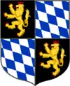 écartelé en 1 et 4 de sable, au lion d'or, armé, lampassé et couronné de gueules (Palatin) et en 2 et 3 fuselé en bande d'azur et d'argent (Bavière).[9].