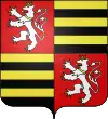 (fr) Écartelé, au premier et au quatrième de gueules au lion à la queue fourchée d'argent armé et lampassé d’or, couronné et colleté du même, au deuxième et au troisième fascé d'or et de sable