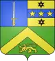 Coupé : au 1, parti du quartier des comtes militaires et d'or, à la fasce d'azur, chargée de trois étoiles du champ et accompagnée en chef et en pointe d'une molette de sable ; au 2, de sinople, au chevron d'or, accompagné en pointe d'un lion léopardé du même.[3],[2] |