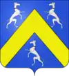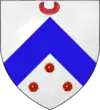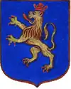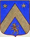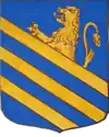 D'azur semé de besants d'or, au lion d'argent, la queue contournée, armé de gueules et lampassé d'or. |
